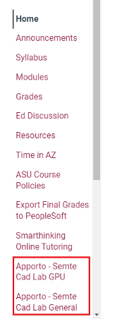 Step 3: Click the Apporto Lab(s) in your course navigation menu (see example image).